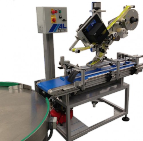 The system is designed to run at approximately 40 products per minute, for sandwich wedge packs with a tamper seal, (it has the ability to perform at a higher rate with alternate products) and has a unique function to apply a two part label. To achieve this, the machine has an advanced multi-labelling function incorporating a pneumatic system which applies the second label adapted around the back of the sandwich pack forming a tamper seal. As the print engine reads the two part label as a single label, no specialist software is required to set the design. The printer also facilitates real time print and apply so that variable information; such as name, ingredients and barcodes can be selected to suit the products being labelled on demand without the need for a separate print room process.