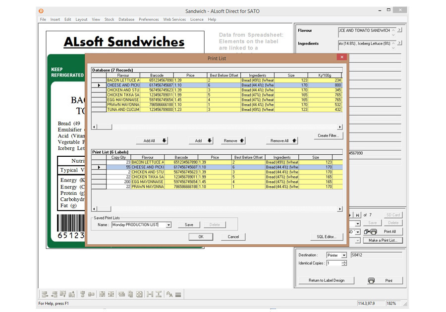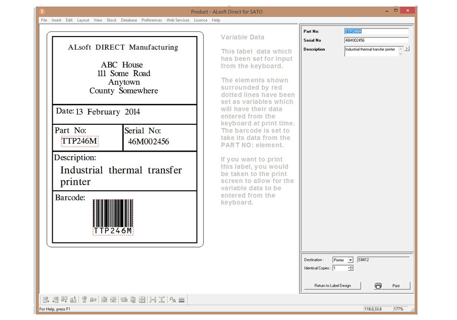 Because it's written exclusively for SATO and Zebra printer ranges ALsoft DIRECT offers direct control over all of the printers features and settings, with accurate screen representations of printer fonts, making it the first 100% WYSIWYG labelling application – a must for accurate positioning of label text & graphics, right first time.