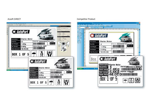 ALsoft DIRECT offers all the features you would expect from a professional labelling package including database integration, copy fitting, variable graphics, serial numbers and industry standard linear and 2D barcode symbologies.